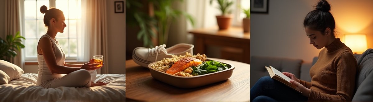 저녁 운동은 취침 2-3시간 전에 마치는 것이 좋습니다. 저녁 식사에는 트립토판이 풍부한 닭가슴살, 두부, 바나나 등을 포함시키고, 카페인과 알코올은 피하세요. 취침 전 30분은 디지털 기기에서 떨어져 책을 읽거나 부드러운 음악을 들으며 신경계를 진정시키는 시간으로 만드세요.