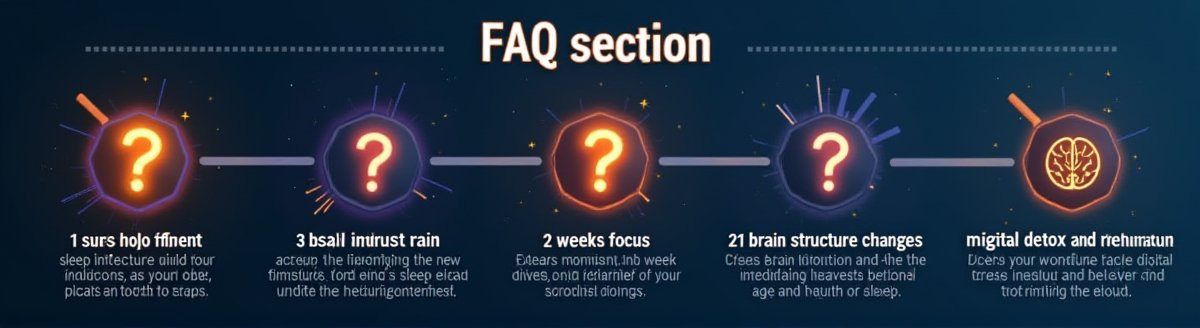 --- 💡 자주 묻는 질문 1. 저녁에 일을 마치고 나면 너무 피곤해서 습관을 실천할 에너지가 없어요. → 처음에는 5분만 투자해보세요. 피곤할 때일수록 가벼운 명상이나 호흡 운동이 오히려 에너지를 회복하는 데 도움이 됩니다. 너무 완벽하게 하려는 압박감보다는 '조금이라도 한다'는 마음으로 시작하세요. 2. 밤늦게까지 공부나 작업을 해야 하는 경우는 어떻게 하나요? → 50분 집중 후 10분 휴식의 루틴을 유지하세요. 휴식 시간에는 스트레칭이나 가벼운 호흡 운동으로 뇌에 산소를 공급해주세요. 또한 작업 종료 1시간 전부터는 블루라이트 차단 필터를 최대로 설정하는 것이 좋습니다. 3. 효과를 보려면 얼마나 걸리나요? → 개인차가 있지만, 대부분 3일째부터 수면의 질 개선을 느끼고, 2주째에는 주간 집중력 향상을 경험합니다. 뇌 구조의 변화를 위해서는 최소 21일 이상의 꾸준한 실천이 필요합니다. 4. 여러 습관 중에서 가장 중요한 것은 무엇인가요? → 디지털 디톡스와 명상이 가장 효과가 큽니다. 시간이 부족하다면 이 두 가지만이라도 꼭 지키세요. 특히 스마트폰 사용을 줄이는 것만으로도 수면의 질이 30% 이상 개선됩니다.