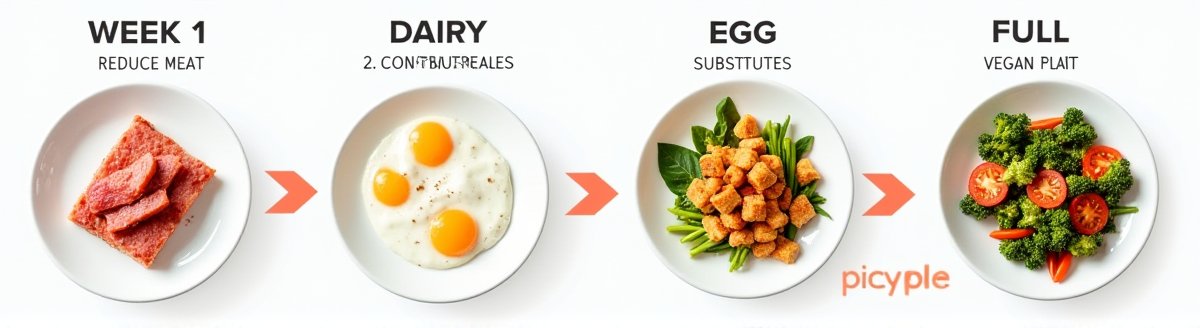 한꺼번에 비건 식단으로 전환하기보다는 단계별로 접근하는 것이 성공 비결이에요.