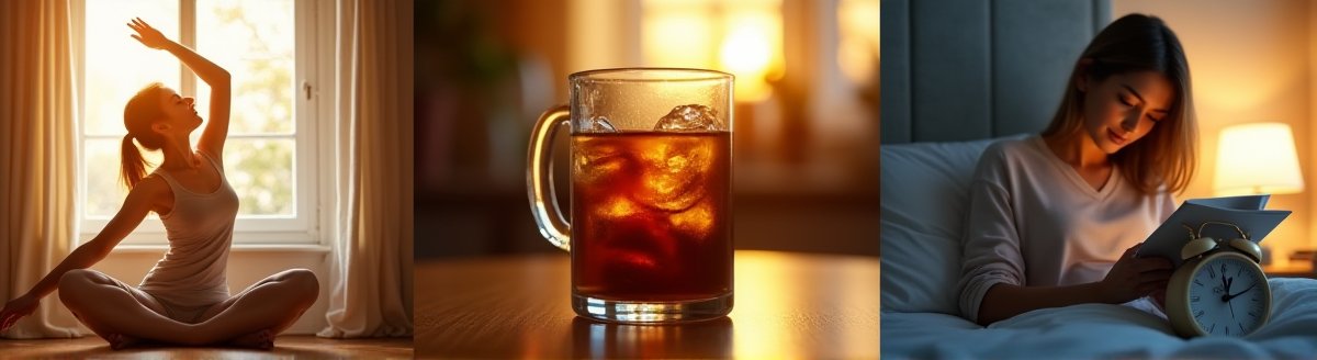 - 강렬한 햇빛 노출(창가에서 10분) → 콜드브루 1컵 → 5분 스트레칭